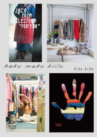 半年に一度の恒例行事 JUCO.(履く) と tsutae(巻く)と YEAH RIGHT!!(着る) 3ブランドによる新作展示会です。 各ブランドのシーズンコレクションの新作発表と その場でお買い物を楽しめるショップをミックスしたイベントを開催いたします。 今回のゲストブランドはJuana de Arco(ホォアナデアルコ)、アルゼンチンのライフスタイルブランドです。 皆さまのお越しをお待ちしております。 JUCO. JUCO. 2026 COLLECTION &# […]