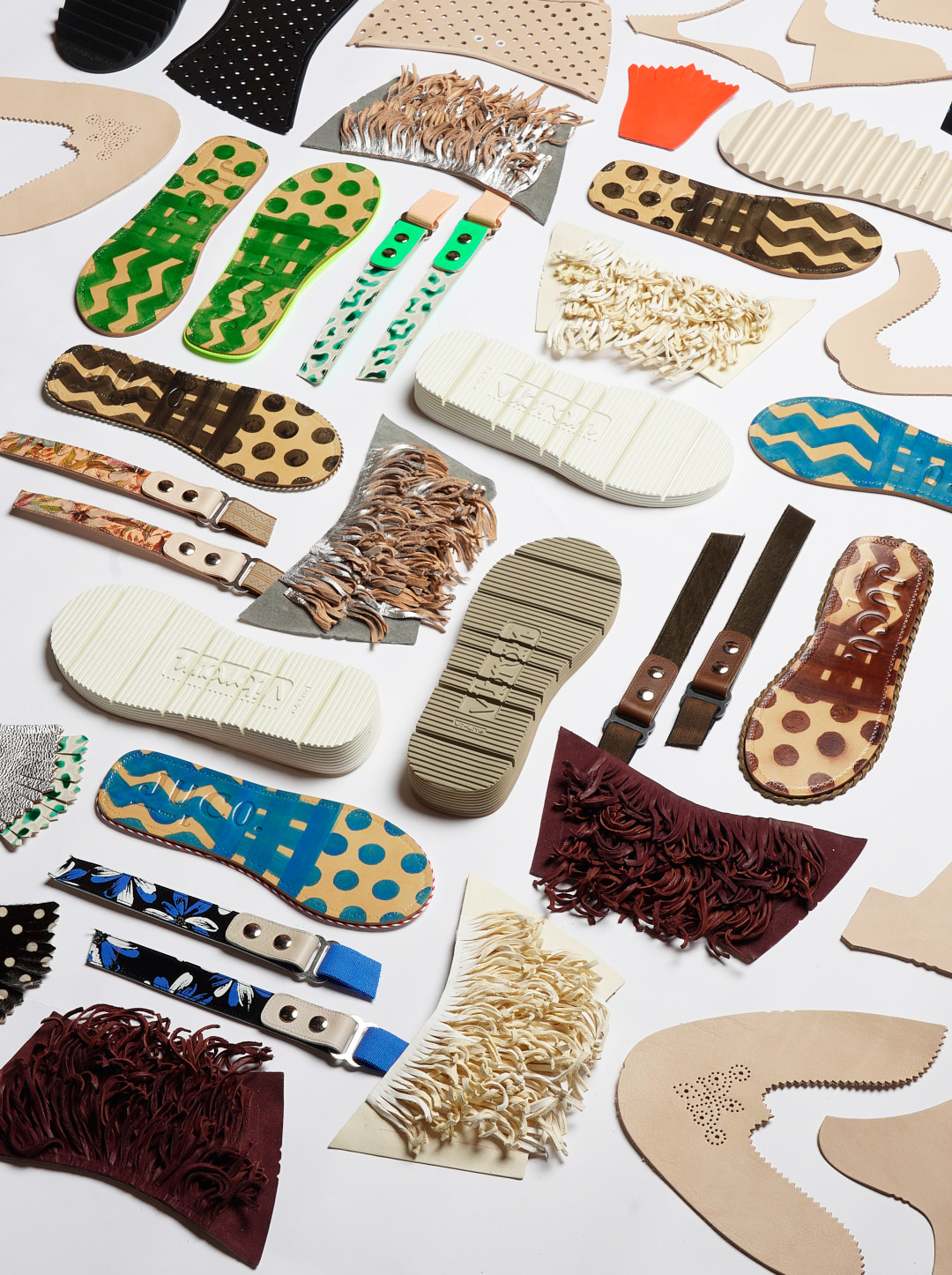 ブランド初期から続く「くせっ毛」シリーズは、今季サンダル型として登場。アッパーとソールの組み合わせを自由に選べる仕様としました。