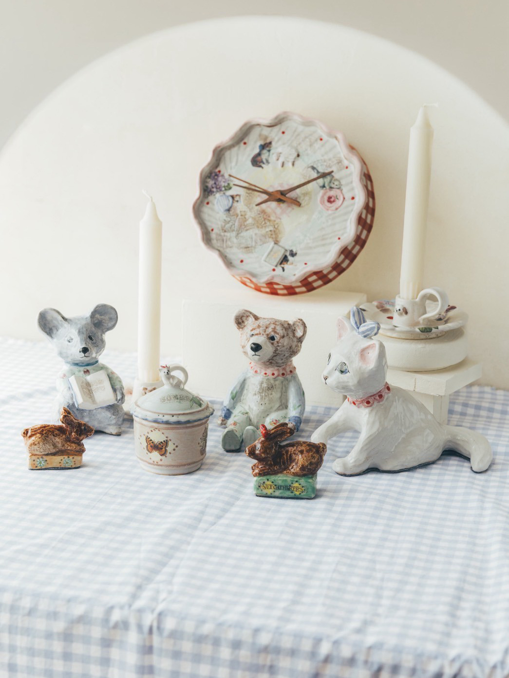 静かな森の村で、日々の暮らしや自然の風景を器に映すように制作しています。