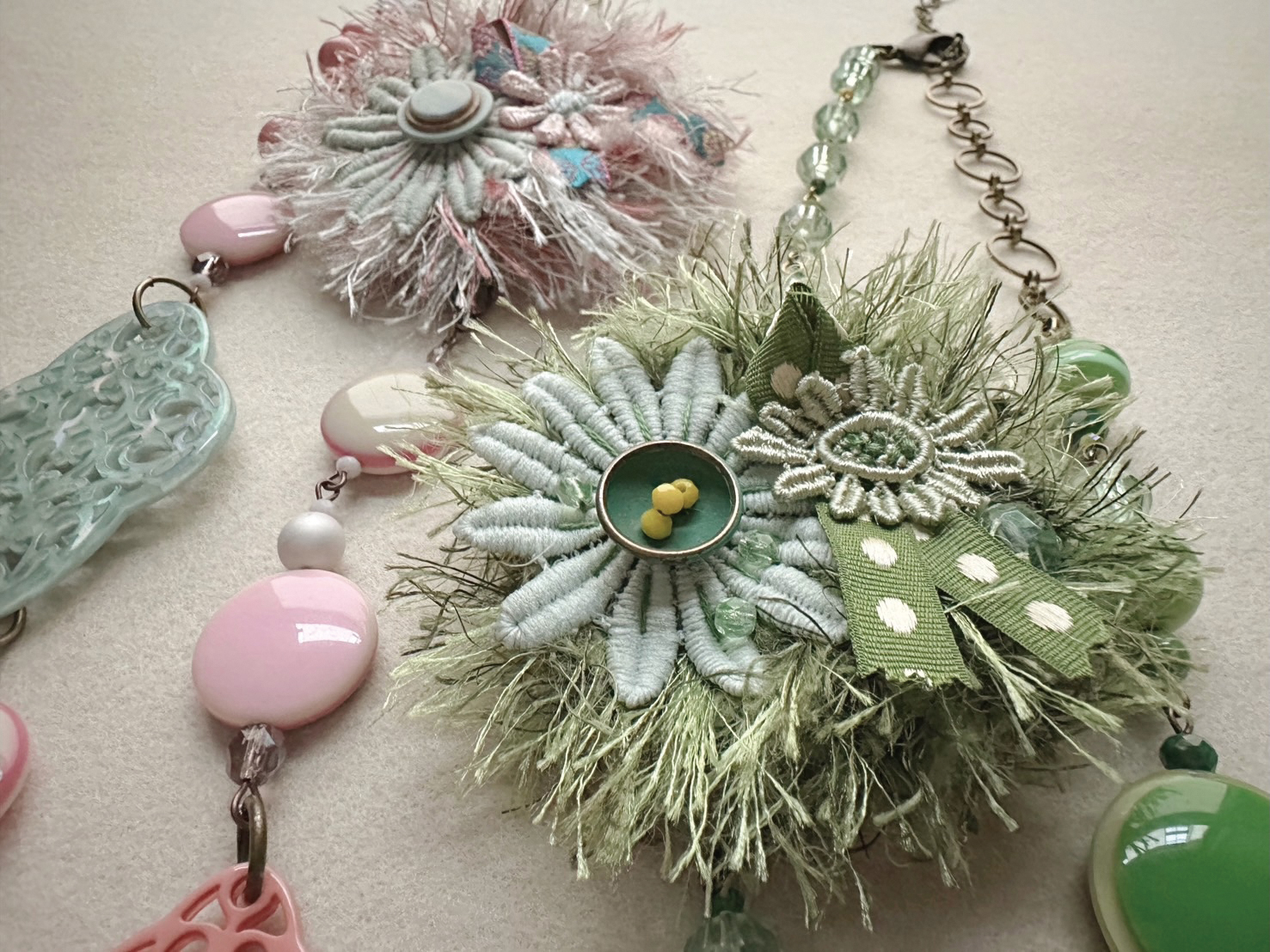 独自の技法と色彩で、世界各地のビーズや異素材を自由に操り、ジュエリーやコラージュを展開。