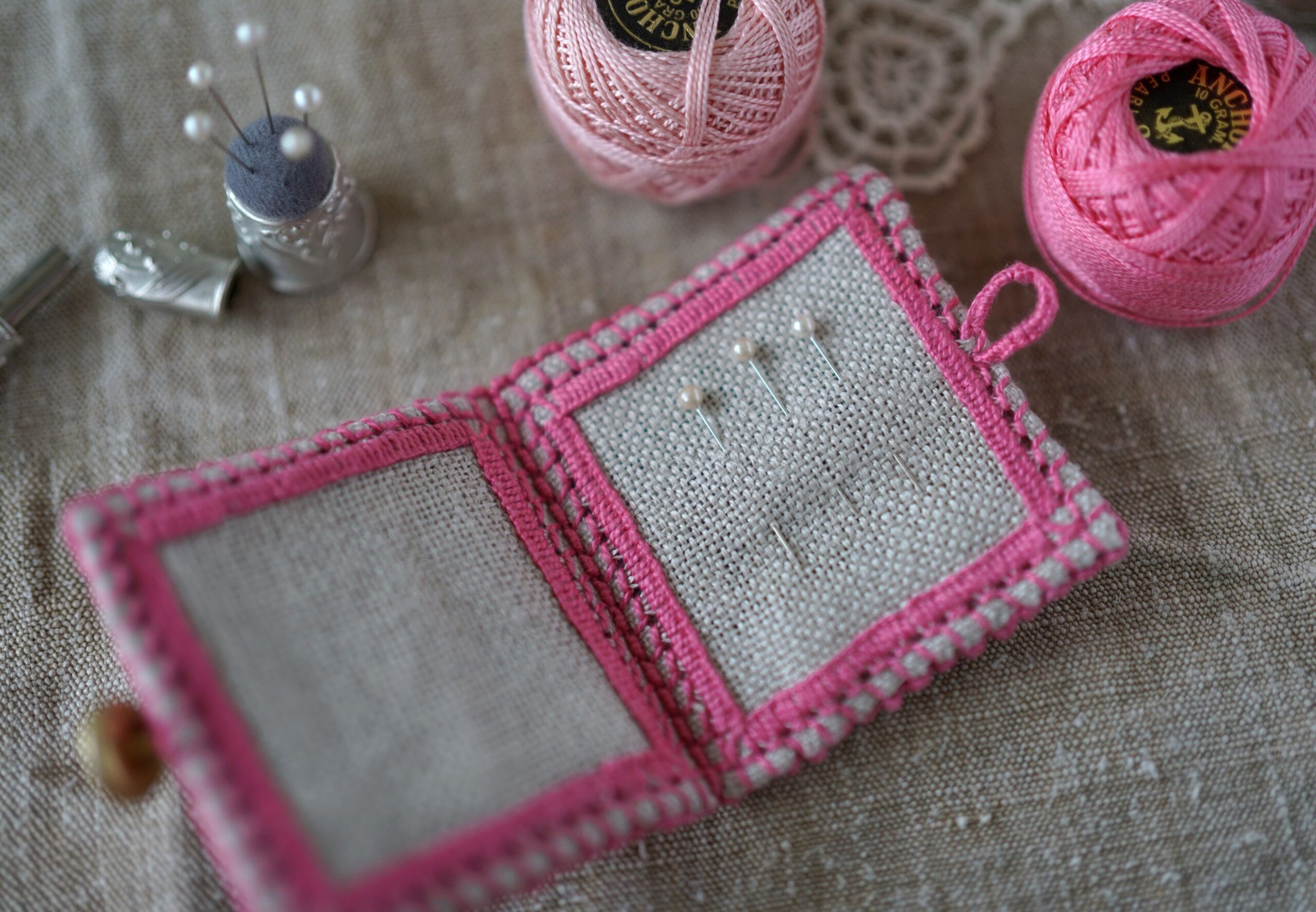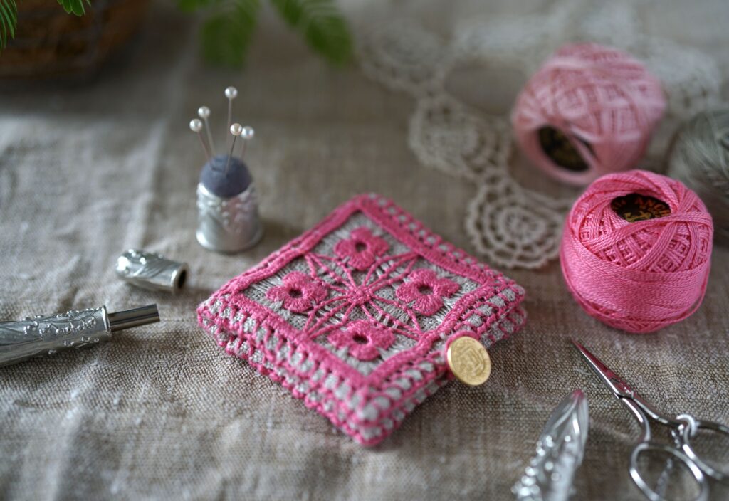 仕上げは小さな本のような針入れにします。お裁縫道具を携帯するのにとても便利です。